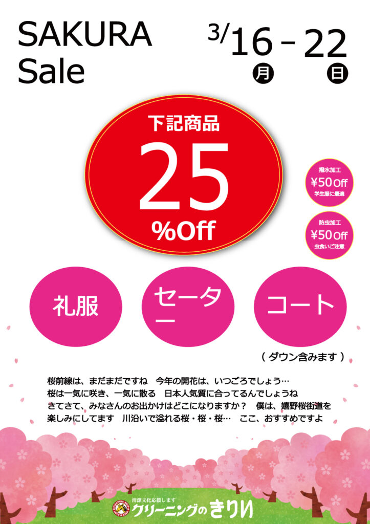 3/16スタート☆コート・礼服・セーター 25%OFF