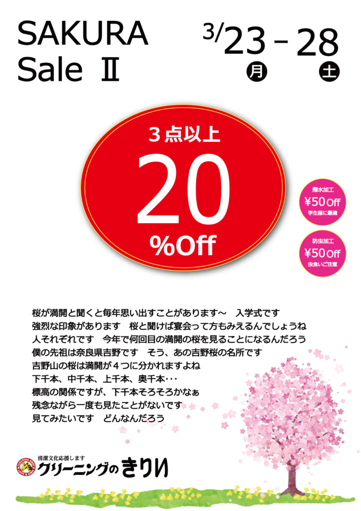 3/23スタート☆3点以上20%OFF